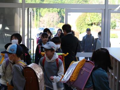 4/8朝、昇降口を開けると、元気にこどもたちが入ってきました。いよいよ、新しい学年のスタートです。