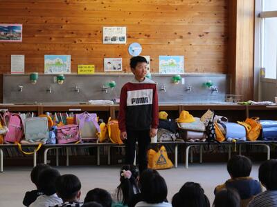 6年生の代表が、どんなことにも全力で頑張りたい、リーダーとして全校をまとめたい、という決意を話しました。