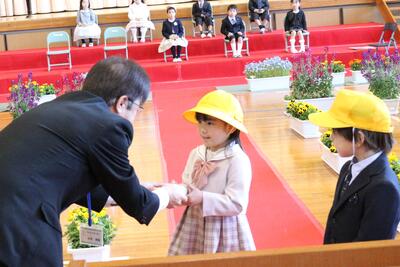令和8年度 入学式 投稿: ホームページ編集者 (04/08) カテゴリー: 学校行事 入学式が行われました。今年の1年生は9人。どこか、緊張しているような表情です。 6年生のお姉さんやお兄さんと手をつないで入場。あたたかい拍手で迎えました。 校長先生から、新しい教科書、帽子、防犯ブザーをいただきました。安全に気を付けて、たくさん学んでいきましょう。